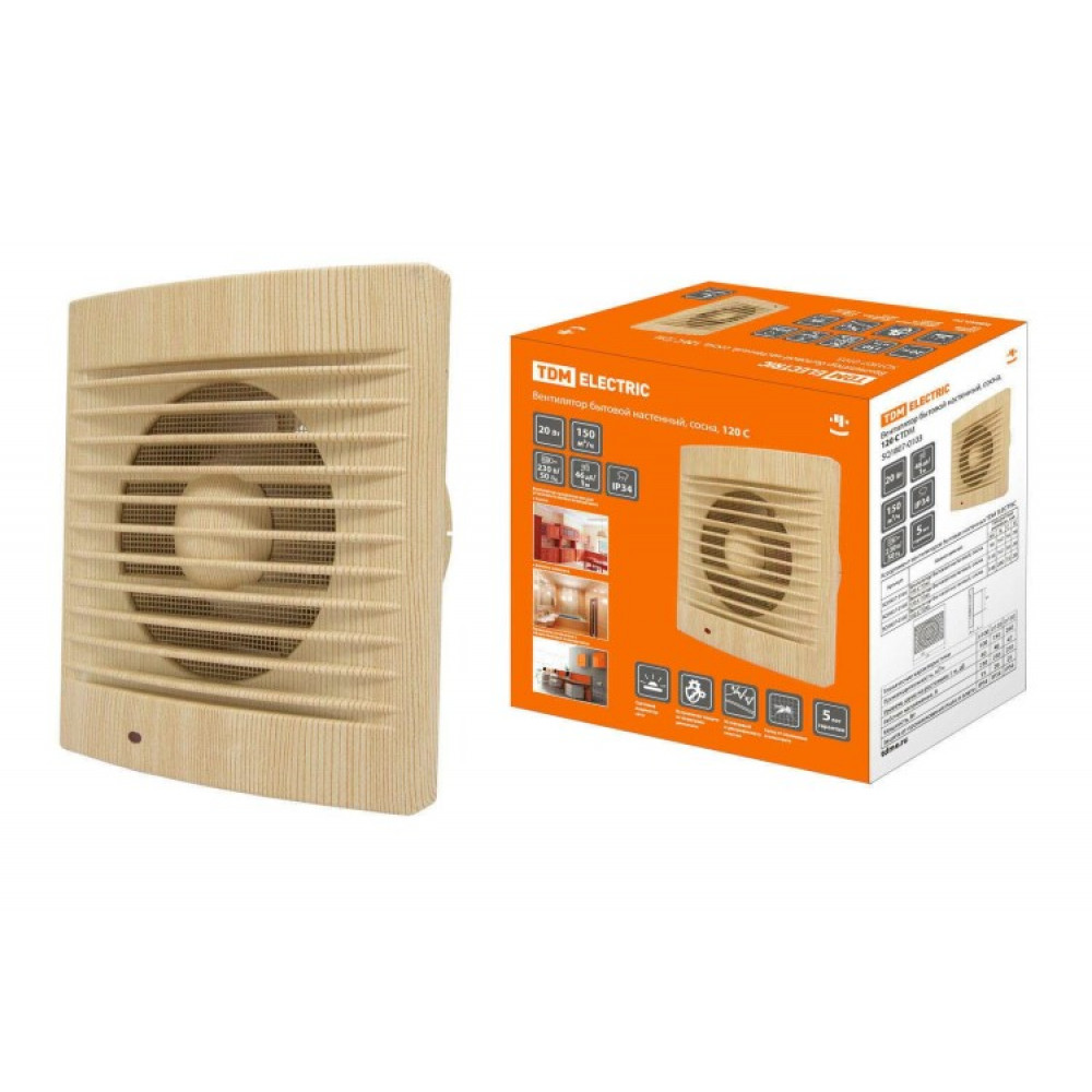 Вентилятор бытовой настенный, 120 С "ЭКО" (сосна) SQ1807-0103, Система вентиляционная