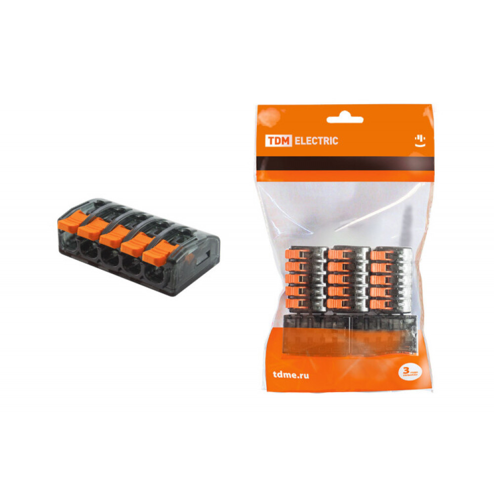 Соединительная клемма СК-615 (2,5мм2) (5 шт/упак) SQ0527-0033, Строительно-монтажная клемма и скрутка