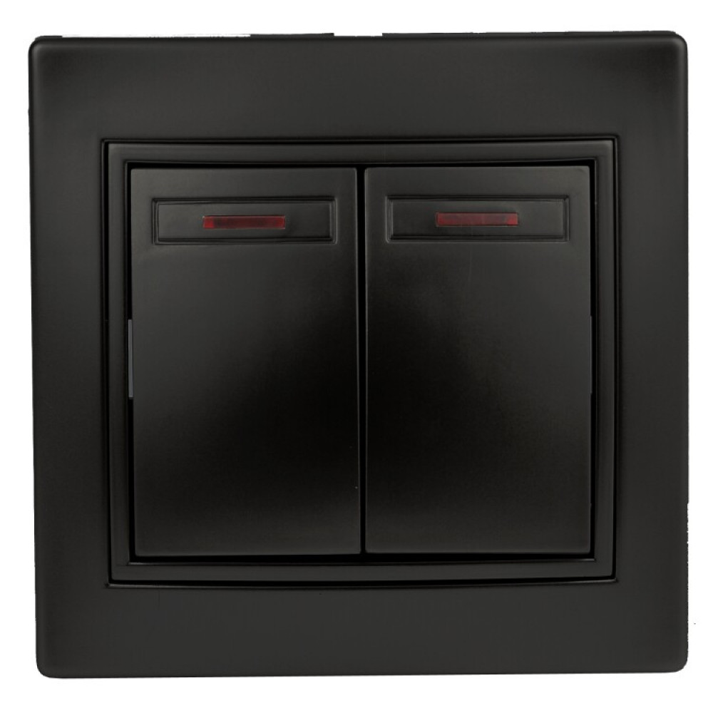 Доставка 1-105-05 Выключатель двойной с подсветкой, 10А-250В, IP20, СУ, Plano, антрацит (10/200/3600) Б0044564