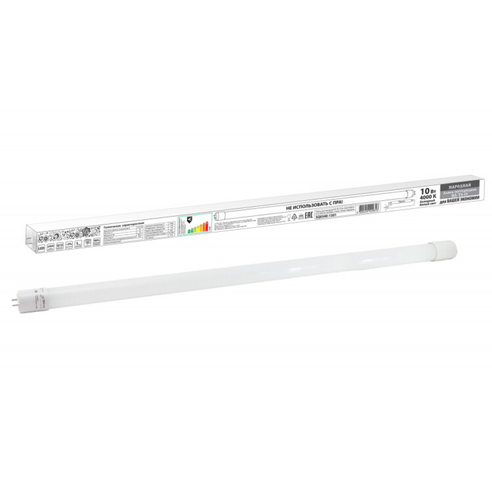 Описание Лампа светодиодная НЛ-Т8-10 Вт-230 В-4000 К–G13, 600 мм, матовая, стекло, непов. Народная SQ0340-1501