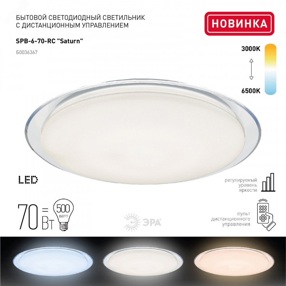 Описание Светильник потолочный светодиодный Классик с ДУ SPB-6-70-RC "Saturn" 70Вт 3000-6500К с ДУ прозрачный кант Б0036367