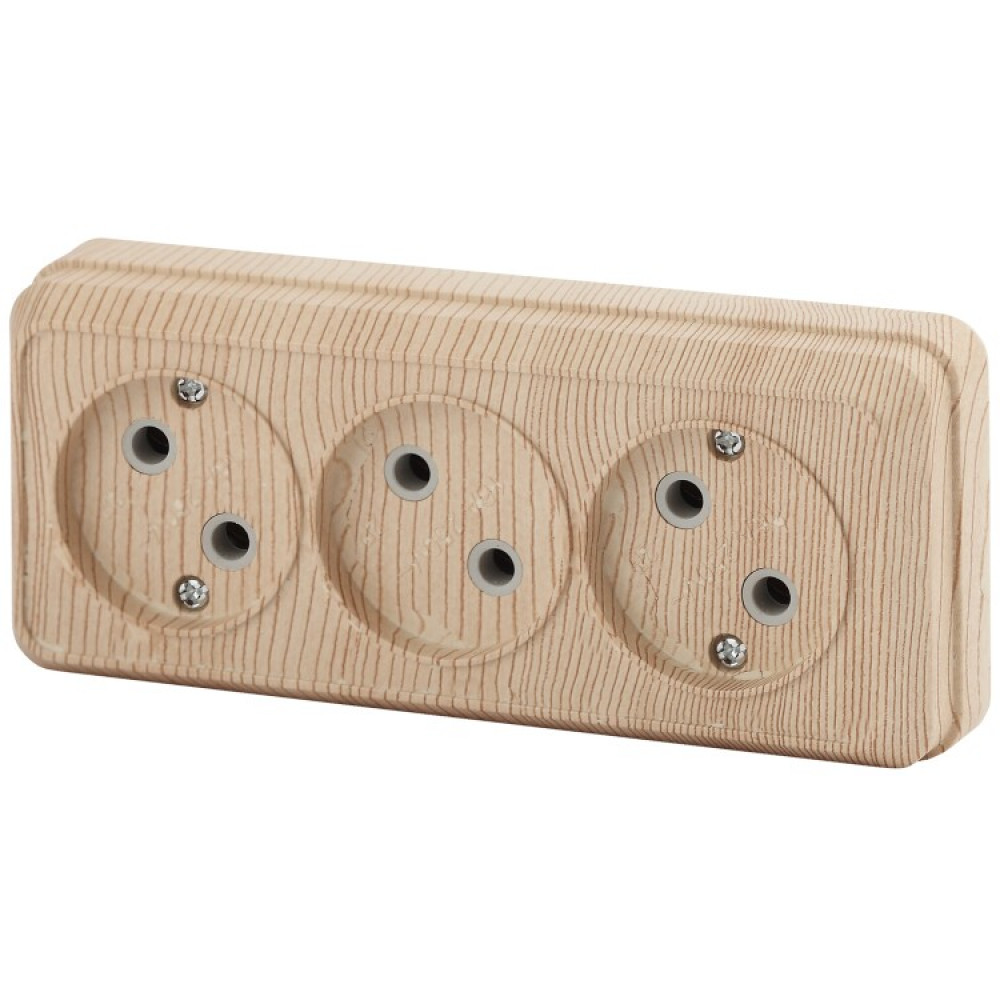 2-205-11 Розетка 3х2P, 16А-250В, IP20, ОУ, Quadro, сосна (10/200/2400) Б0036144, Розетка открытого монтажа