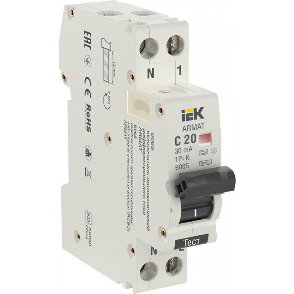 Доставка Выключатель автоматический дифференциального тока 2п (1P+N) C 20А 30мА тип A АВДТ B06S 18мм ARMAT AR-B06S-1N-C20A030