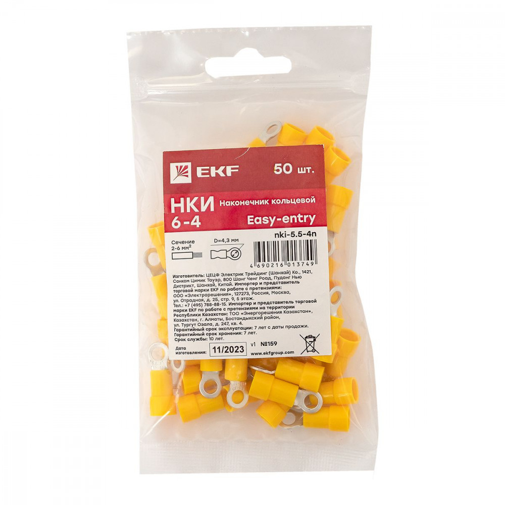 Наконечник кольцевой изолированный НКИ 6.0-4 (50шт.) PROxima nki-5.5-4n, Наконечник, гильза