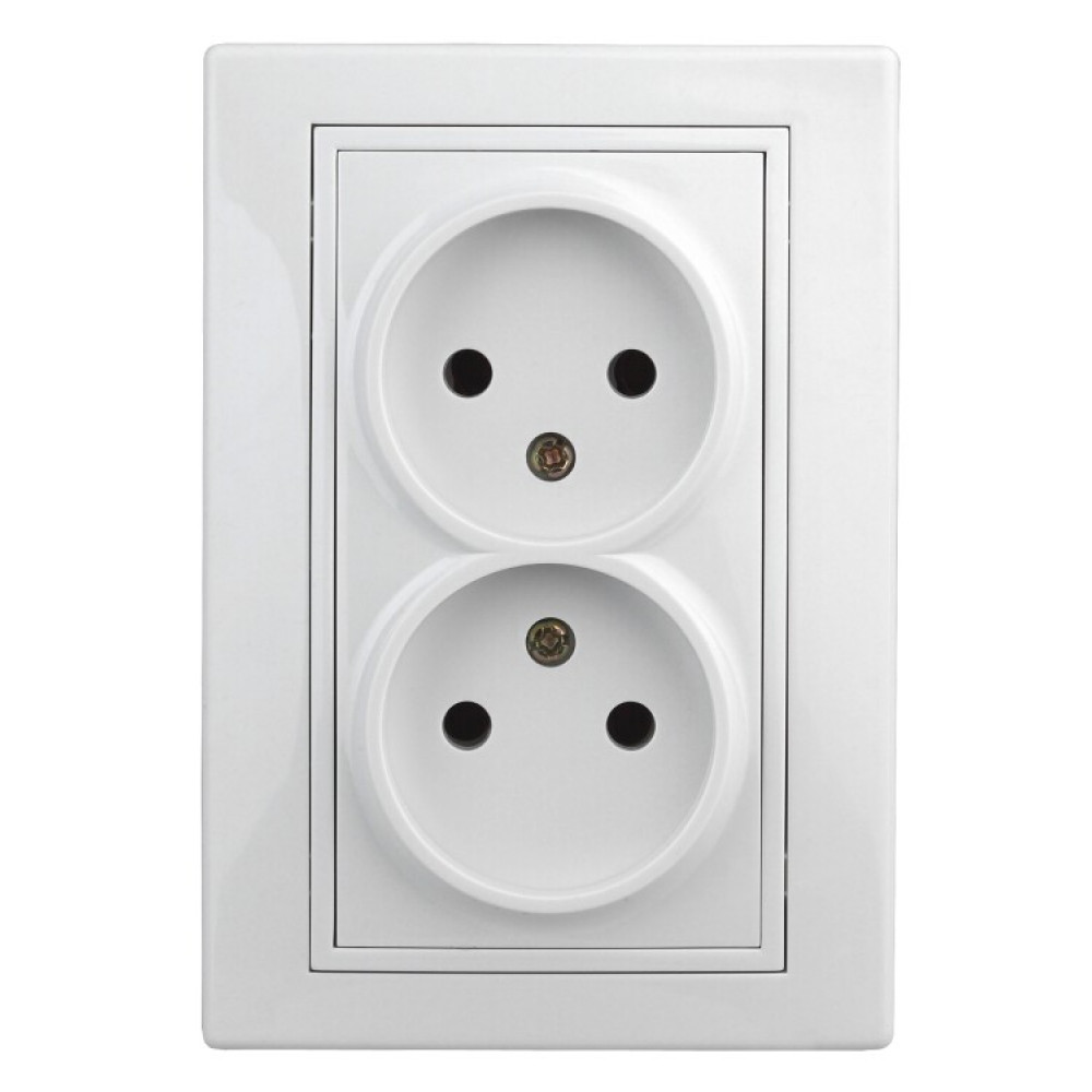 1-204-01 Розетка 2х2P, 16А-250В, IP20, СУ, Plano, белый (10/100/1500) Б0027613, Розетка скрытого монтажа