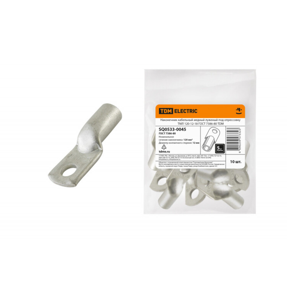 Описание Наконечник медный луженый ТМЛ 120-12-18 ГОСТ 7386-80 SQ0533-0045