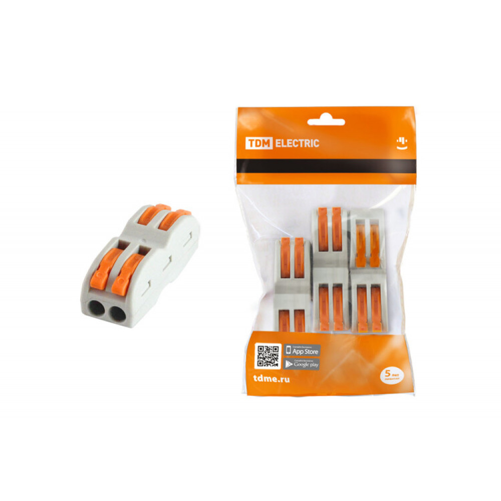 Рычажная клемма, проходная, универсальная, 2 полюса, сечение проводника 0,08 - 4,0 мм кв., 250V, 32A,цвет корпуса: серый, цвет рычагов: оранжевый,в упаковке 50 штук (Аналог 222-4122)