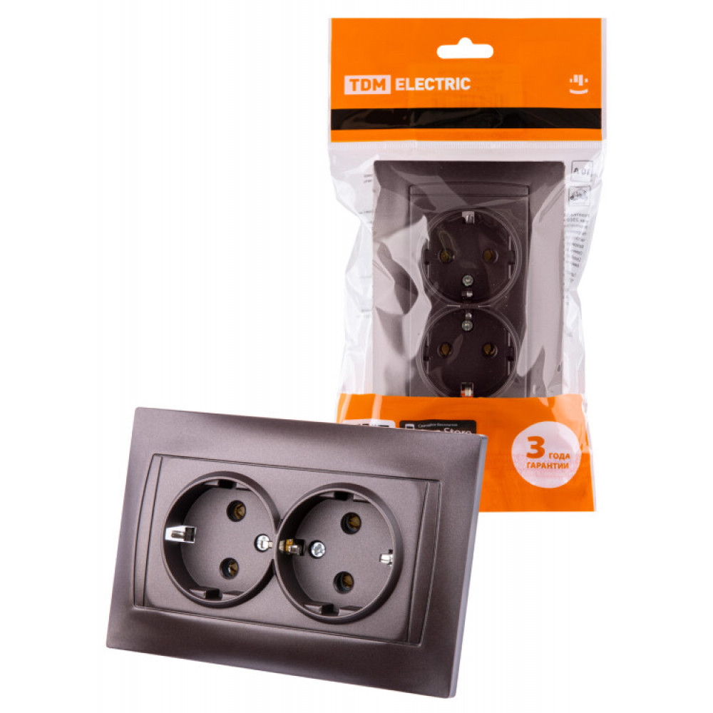 Доставка Розетка двойная 2П+З 16А 250В шоколад "Лама" SQ1815-0525