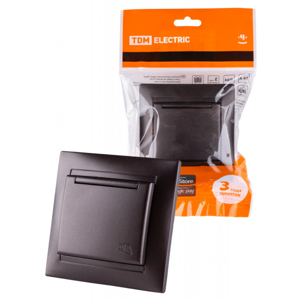 Розетка 2П+З 16А 250В IP44 с защ. шт. с крышкой шоколад "Лама" SQ1815-0514, Розетка скрытого монтажа
