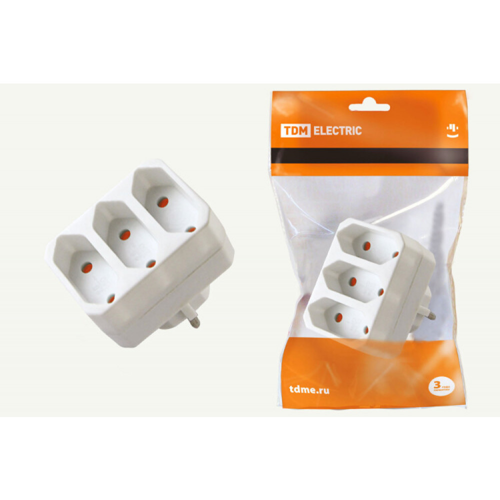 Блок на 3 гнезда 2П 2,5 А 250 B под плоскую вилку белый SQ1806-0205, Удлинитель, сетевой фильтр