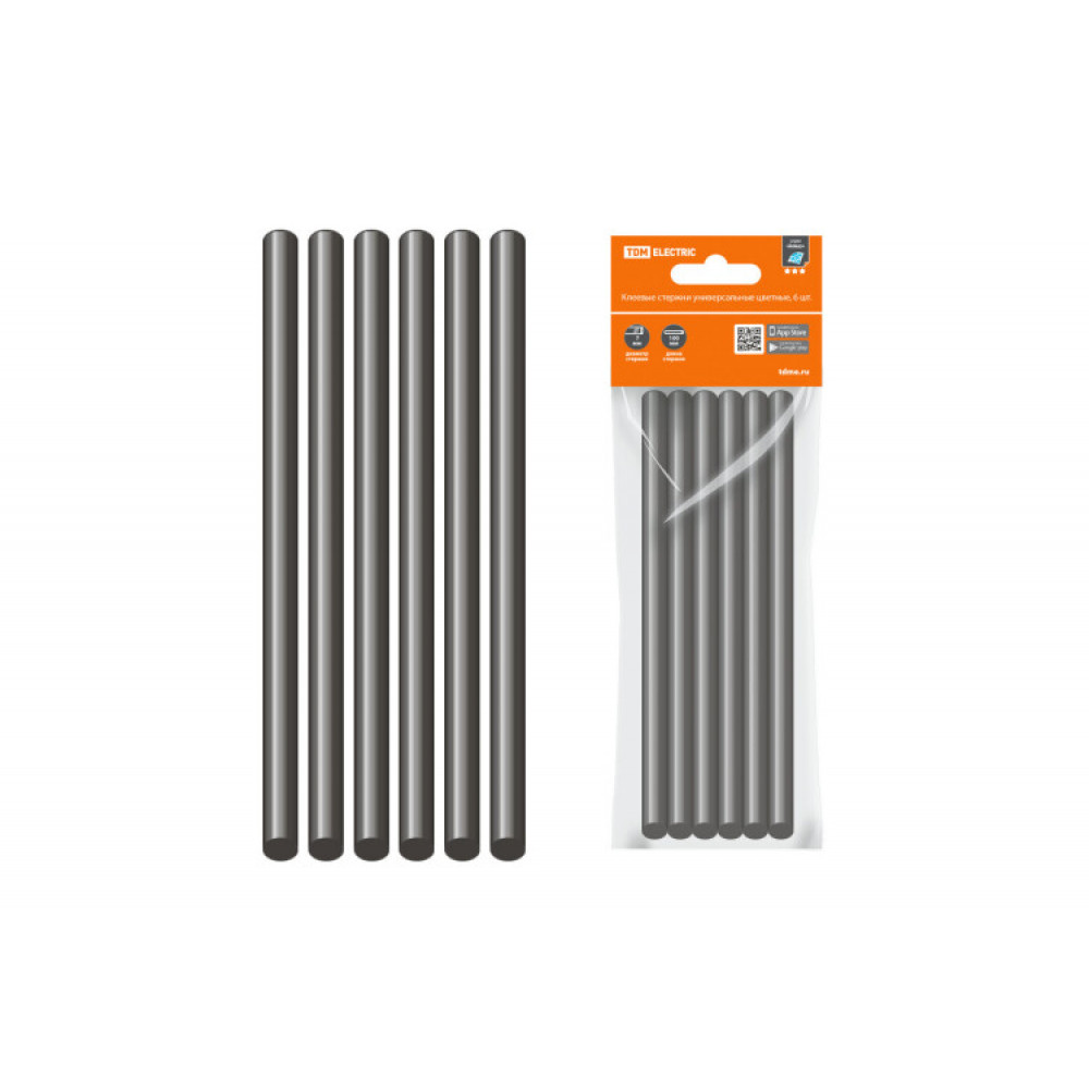 Описание Клеевые стержни универсальные черные, 11 мм x 100 мм, 6 шт, "Алмаз" SQ1024-0512