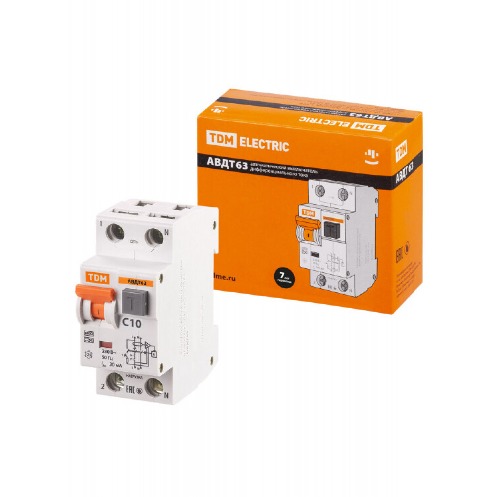 АВДТ 63 2Р(1Р+N) C10 30мА 6кА тип А SQ0202-0001, Дифференциальная защита: УЗО, дифф блок
