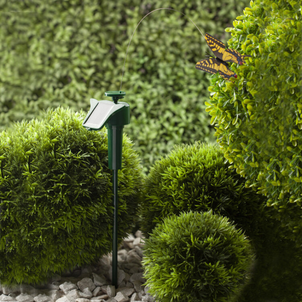 Садово-парковая декоративная композиция SL-PL42-BTF ''Порхающая бабочка'' станет необычным украшением Вашей дачной территории. Декоративная фигурка подойдет для размещения в клумбе, кустарниках или при входе в террасу. Модель имеет высоту в 42 см и без труда вставляется в землю. Функционирует на солнечной батарее. Такой способ получения энергии является самым экологичным, энергоемким, а также бесшумным. Питание происходит во включенном режиме, днем. Светящийся элемент отсутствует, так как главная особенность декора - это цветная бабочка на тонкой проволоке, эффектно ''летающая'' вокруг основания. Высокий уровень пыле и влагозащиты позволяет оставлять композицию на улице даже во время дождя. Обращаем Ваше внимание, что перед использованием фигурки ее необходимо включить и зарядить. Заряжается в течение всего светового дня.