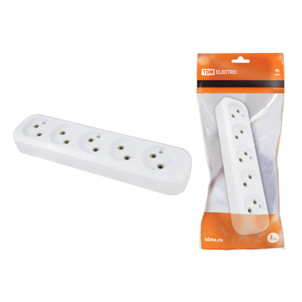 Колодка розеточная 5 гнезд 2П б/з 10А 250В белая SQ1806-0034, Удлинитель, сетевой фильтр