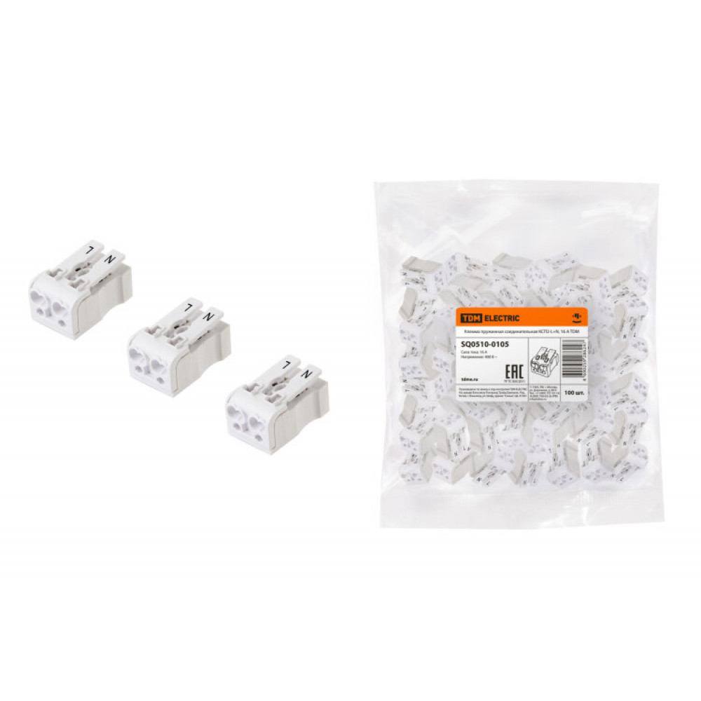 Клемма пружинная соединительная КСП2-L+N, 16 A SQ0510-0105, Строительно-монтажная клемма и скрутка