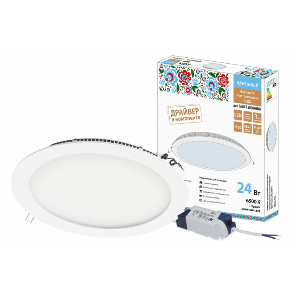 Доставка Светильник ультратонкий встраиваемый светодиодный "Даунлайт НАРОДНЫЙ" СВО (белый) 24 Вт 6500К SQ0329-0244