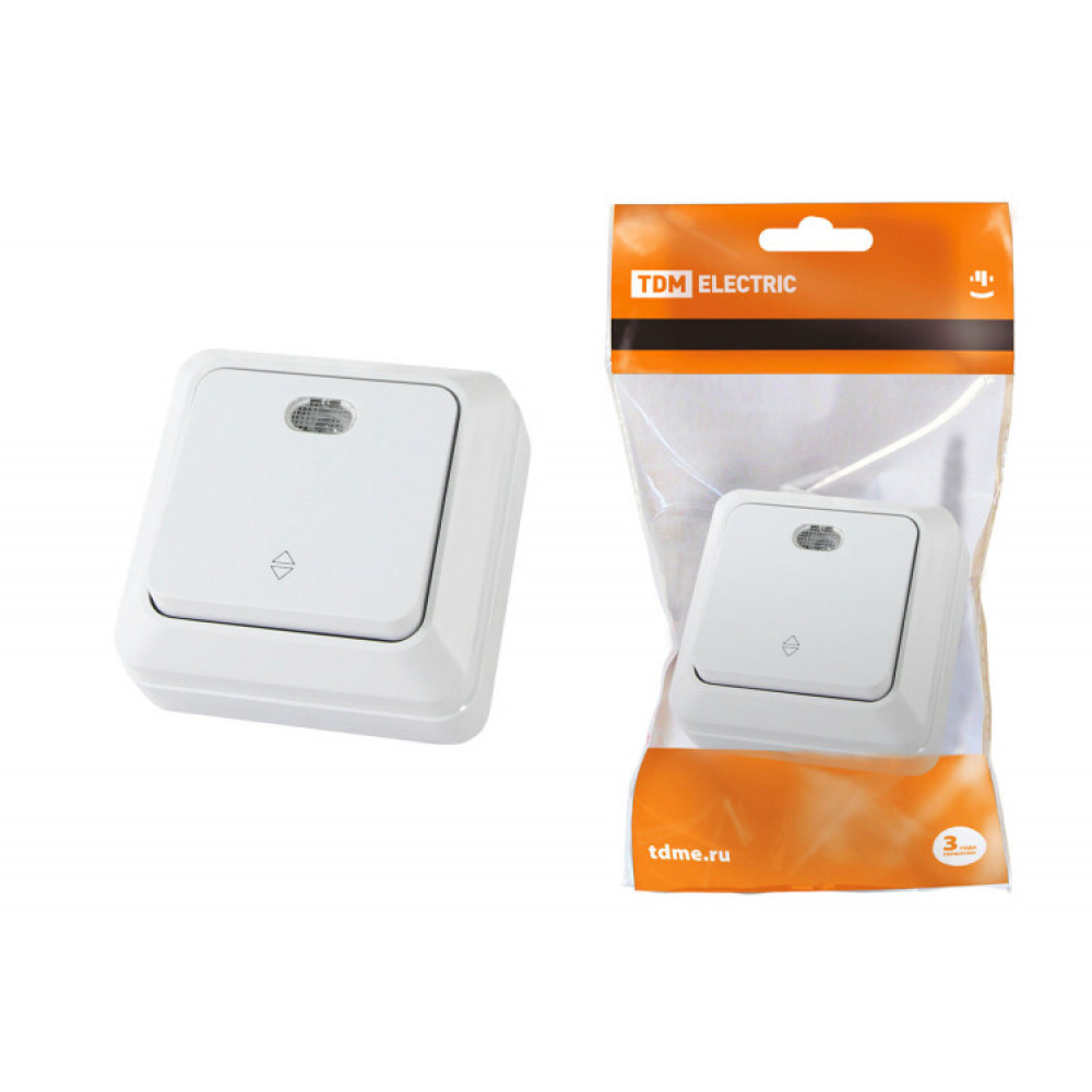 Доставка Переключатель на 2 направления 1-кл. открытой установки с подсветкой IP20 10А, белый "Ладога" SQ1801-0011