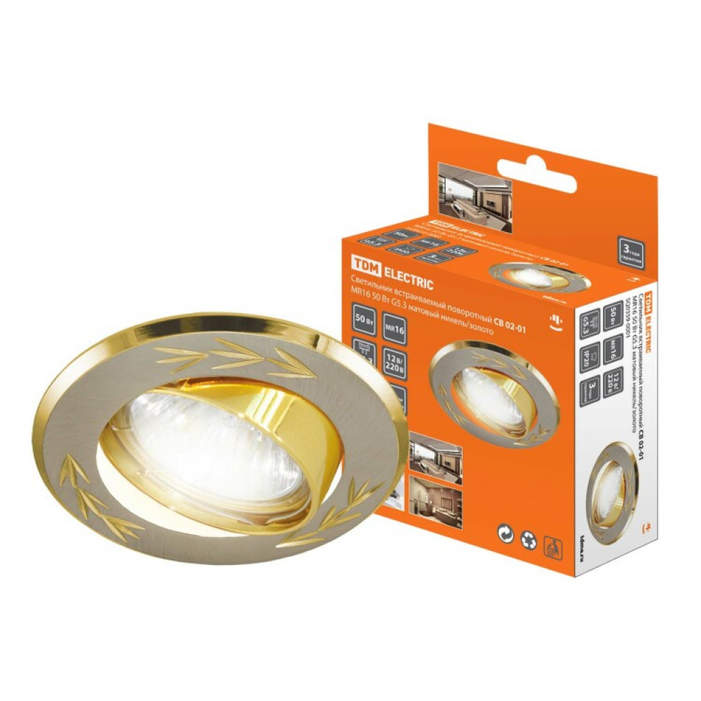 Описание Светильник встраиваемый поворотный СВ 02-01 MR16 50Вт G5.3 матовый никель/золото SQ0359-0001