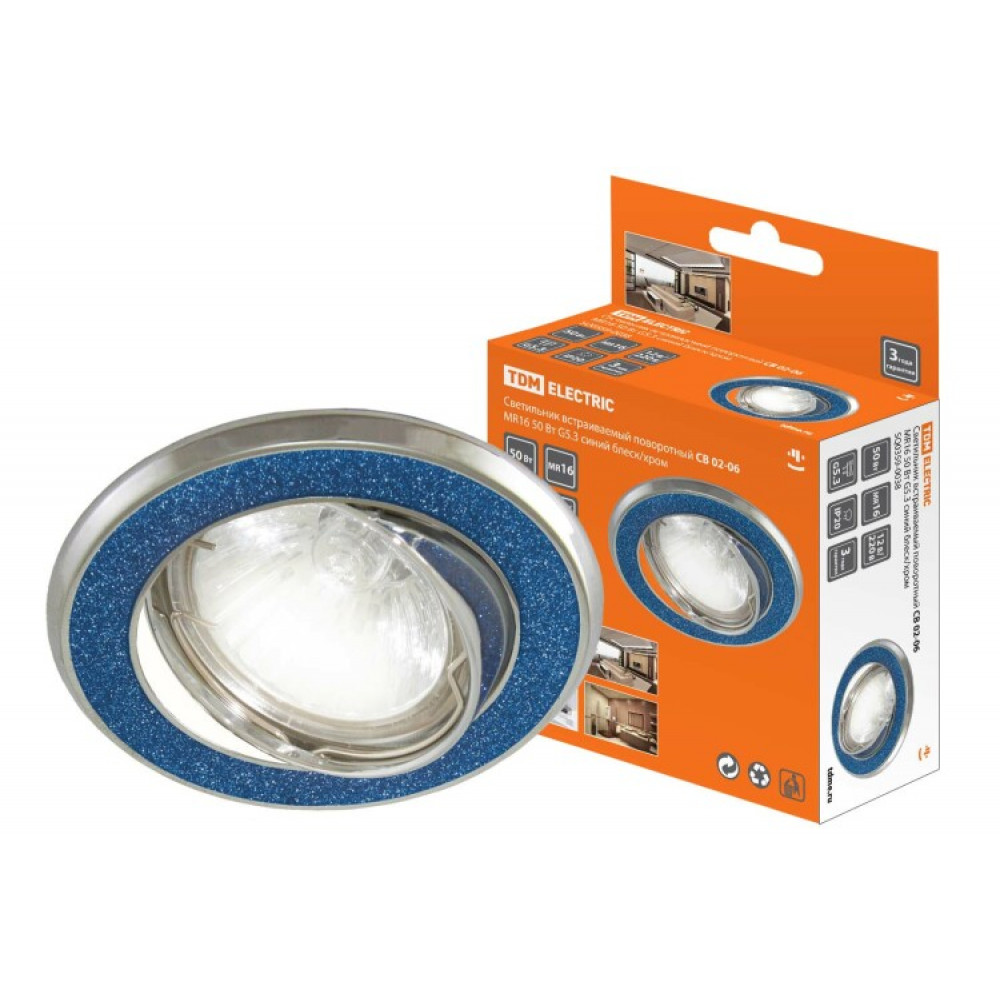 Описание Светильник встраиваемый поворотный СВ 02-06 MR16 50Вт G5.3 синий блеск/хром SQ0359-0038