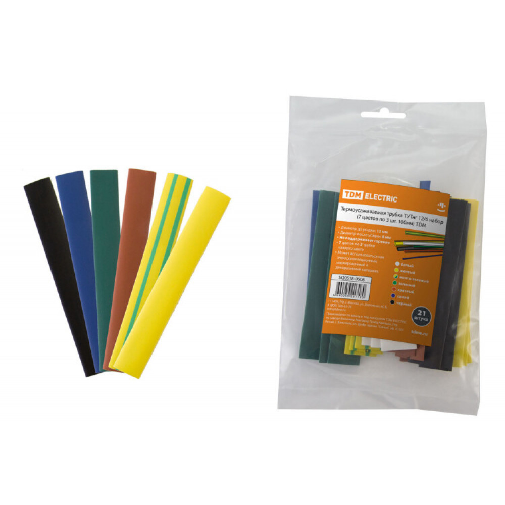 Термоусаживаемая трубка ТУТнг 12/6 набор (7 цветов по 3 шт. 100мм) SQ0518-0506, Изделие термоусаживаемое