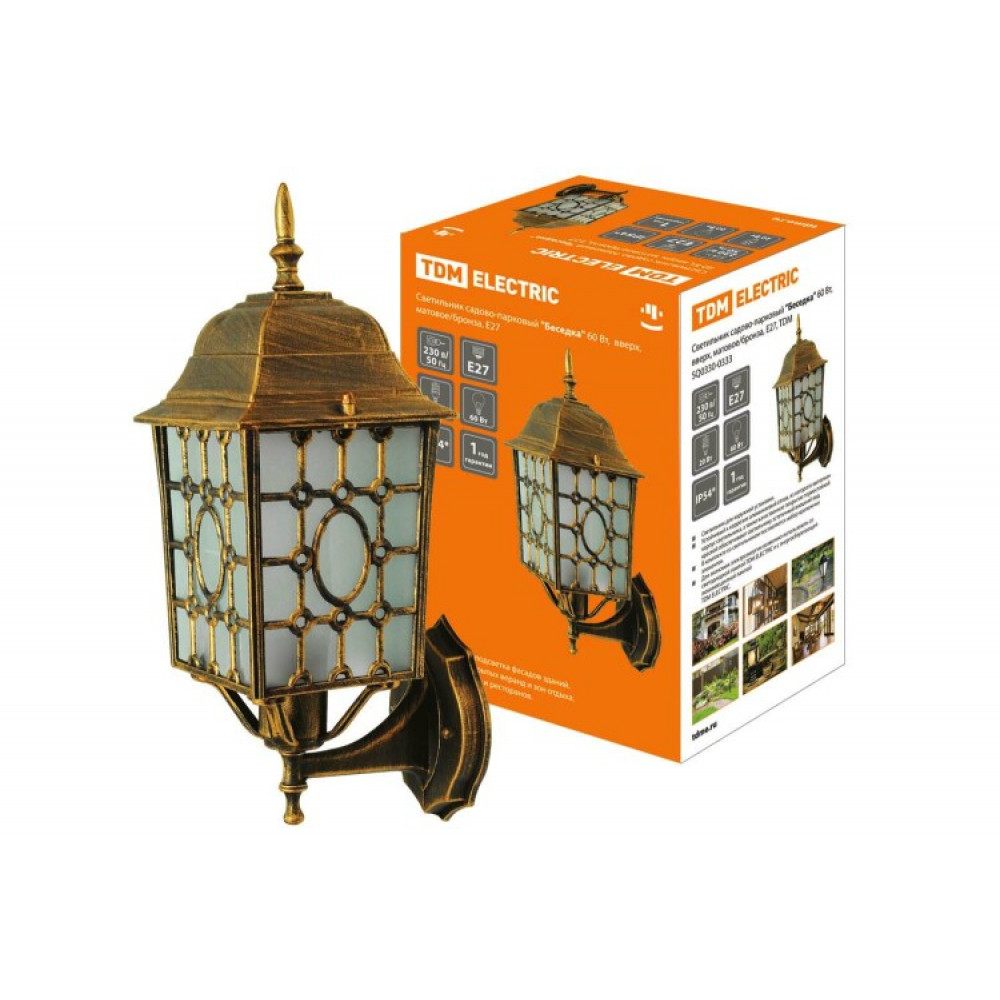 Описание Светильник садово-парковый "Беседка" 60 Вт, вверх, матовое/бронза, Е27, SQ0330-0333