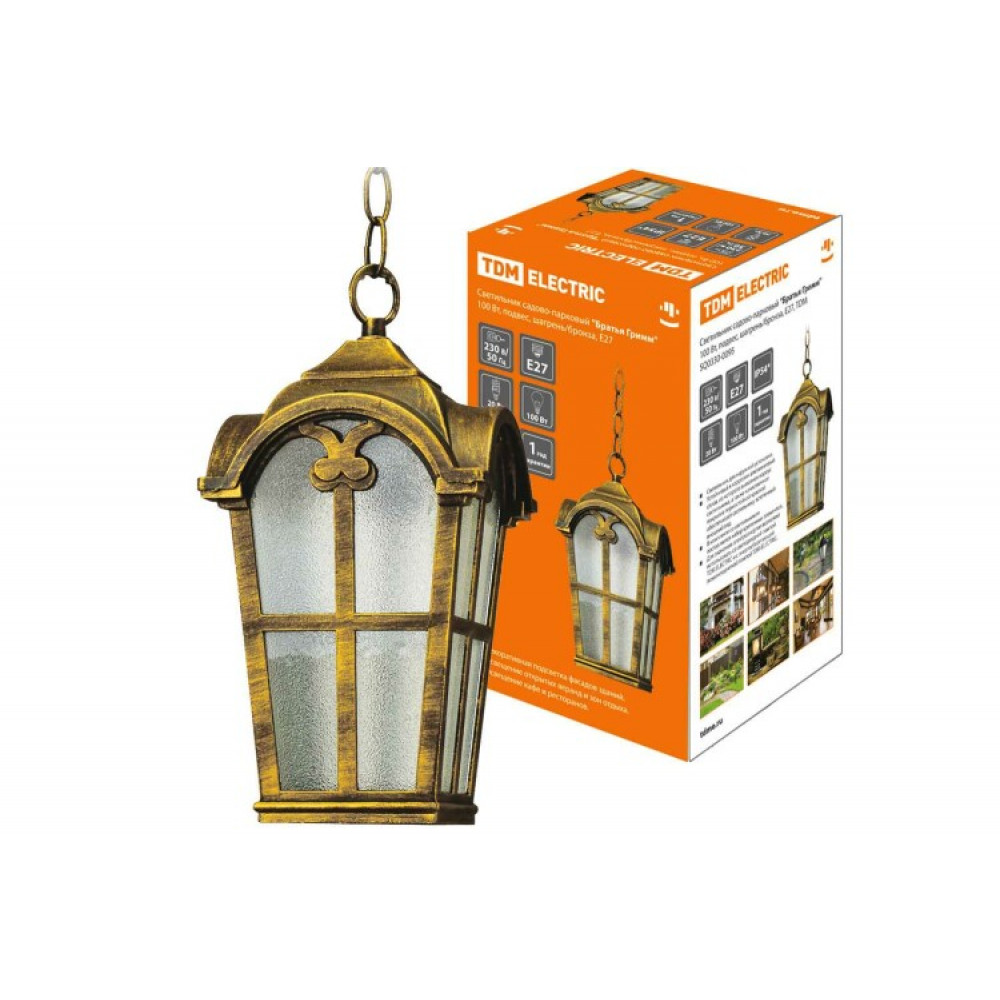Описание Светильник садово-парковый "Братья Гримм" 100 Вт, подвес, шагрень/бронза, Е27, SQ0330-0095