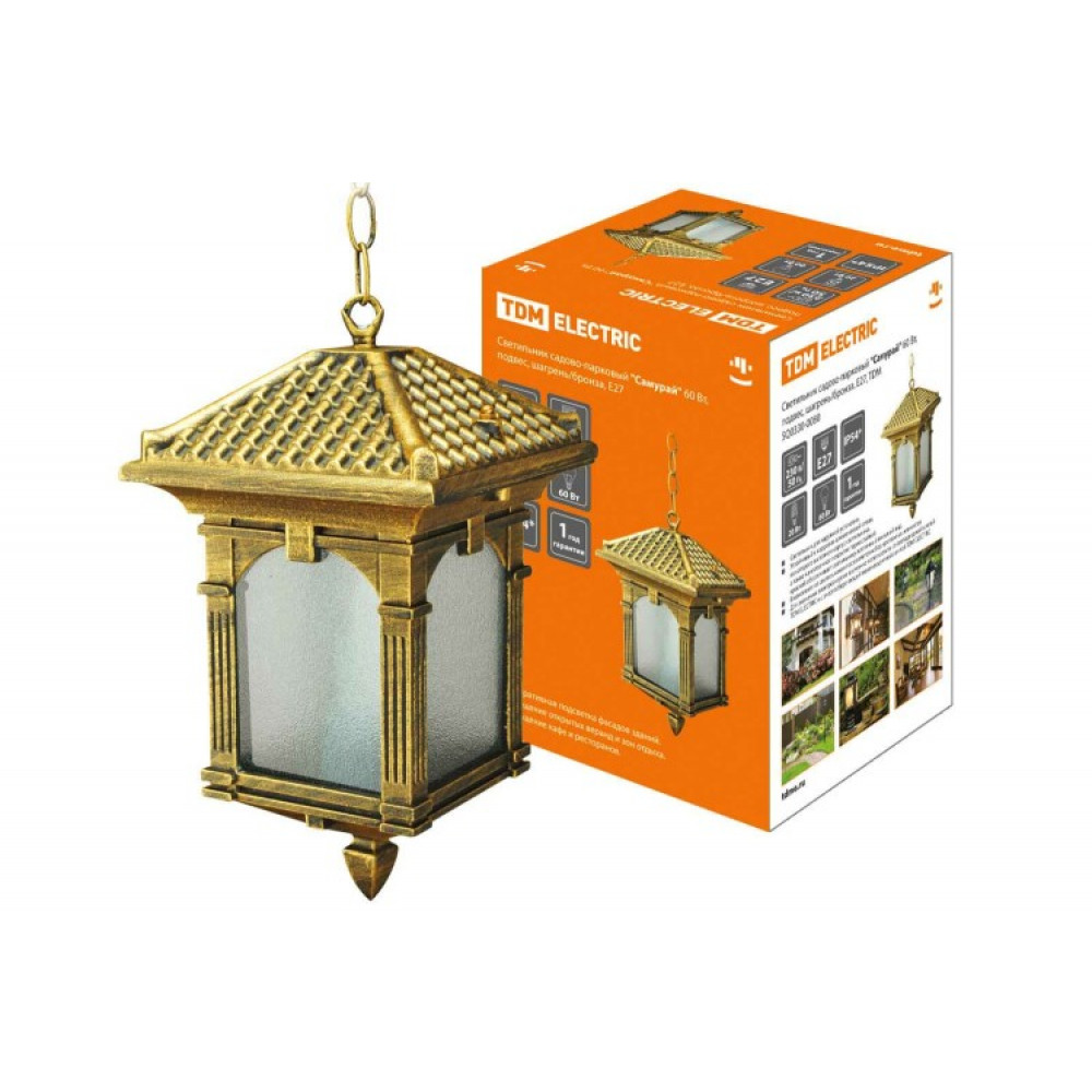 Описание Светильник садово-парковый "Самурай" 60 Вт, подвес, шагрень/бронза, Е27, SQ0330-0080