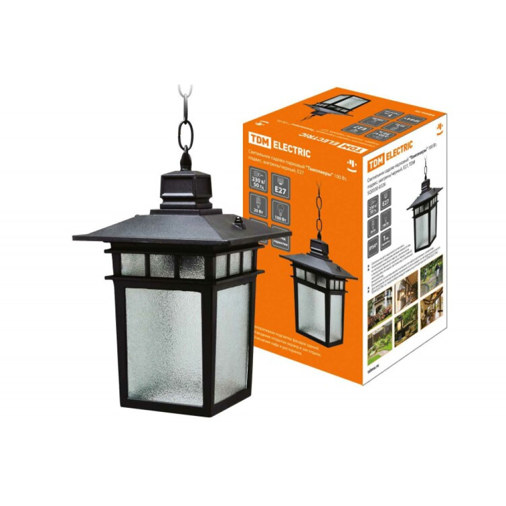 Описание Светильник садово-парковый "Тамплиеры" 100 Вт, подвес, шагрень/черный, Е27, SQ0330-0326