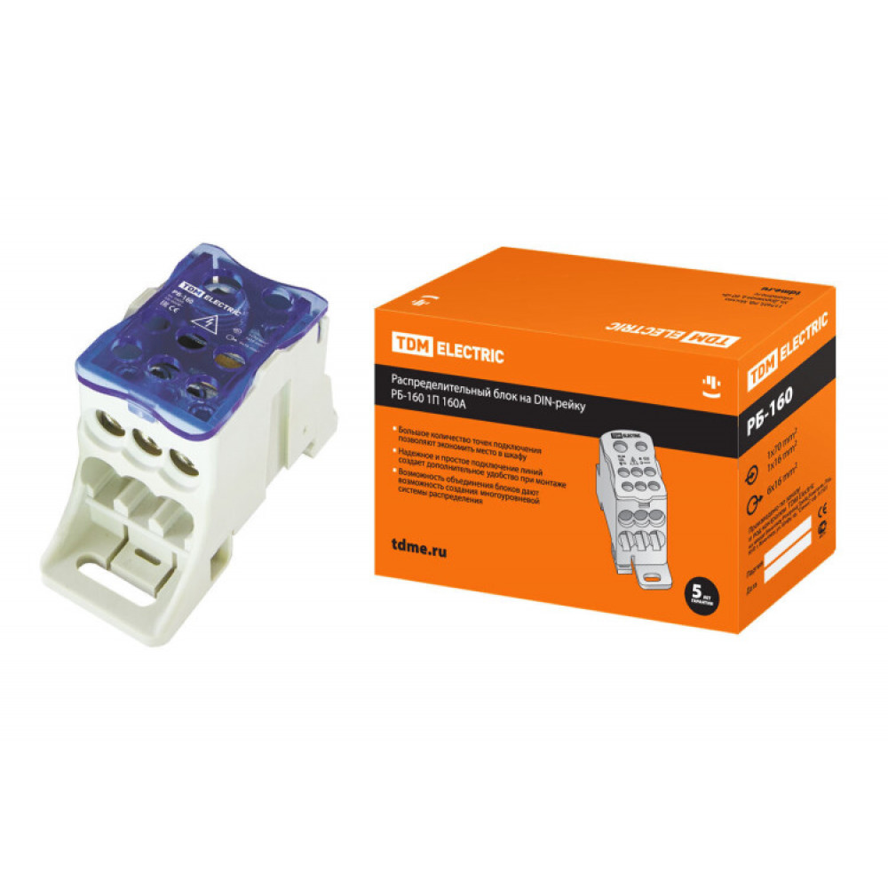 Описание Распределительный блок на DIN-рейку РБ-160 1П 160А (1х70+1x16/6x16) SQ0823-0003