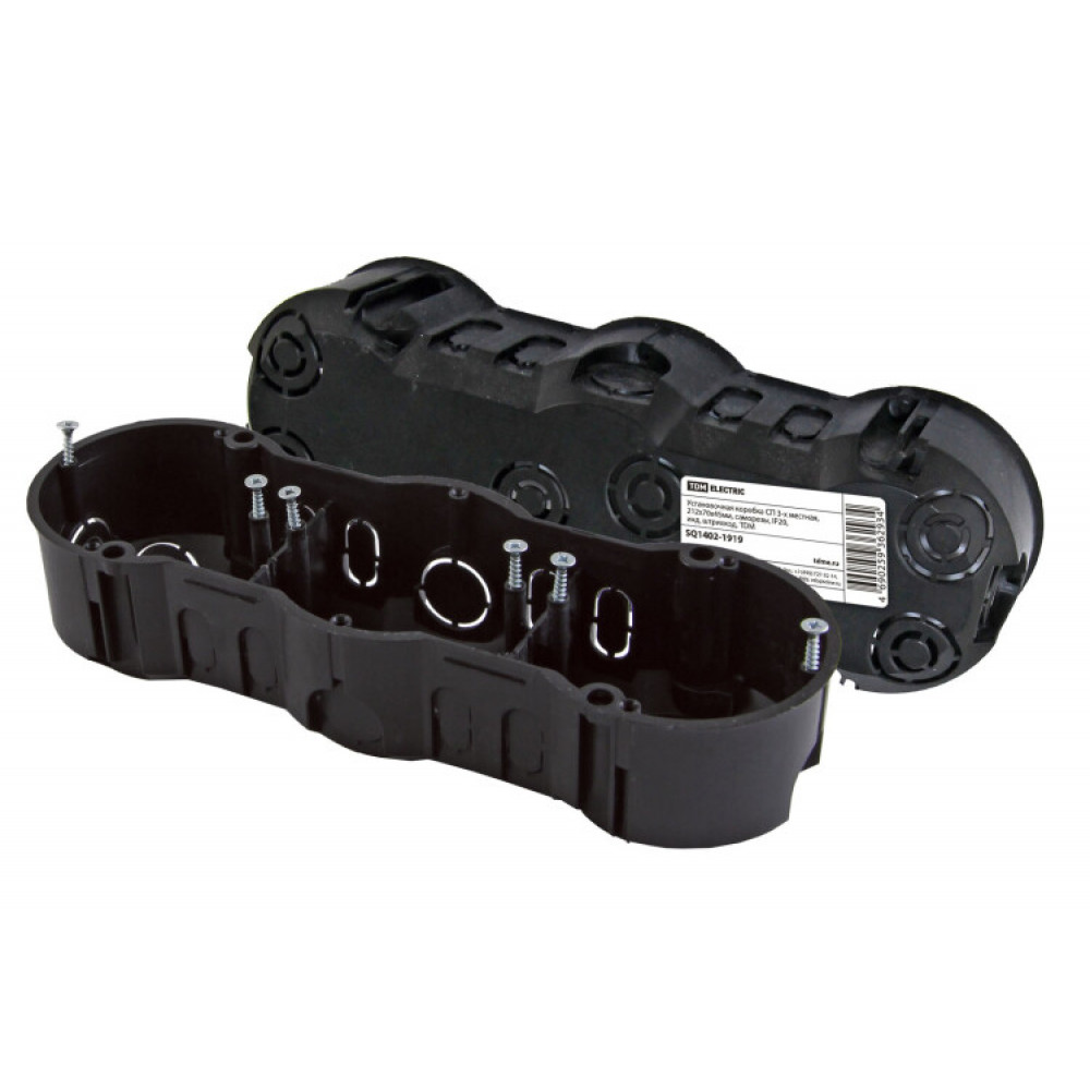 Установочная коробка СП 3-х местная, 212х70х45мм, саморезы, IP20, инд. штрихкод, SQ1402-1919, Коробка распределительная