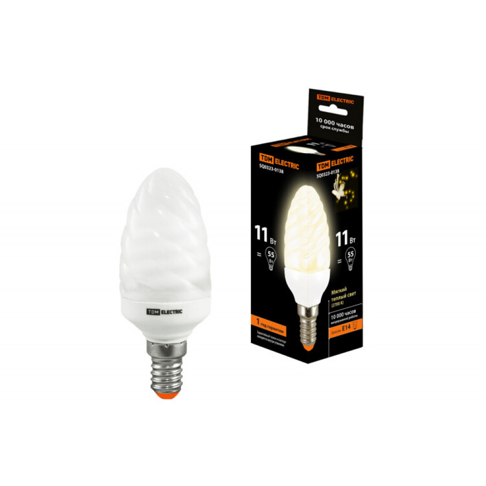 Лампа энергосберегающая КЛЛ-СT-11 Вт-2700 К–Е14 (витая свеча) (mini) SQ0323-0138, Лампа светодиодная