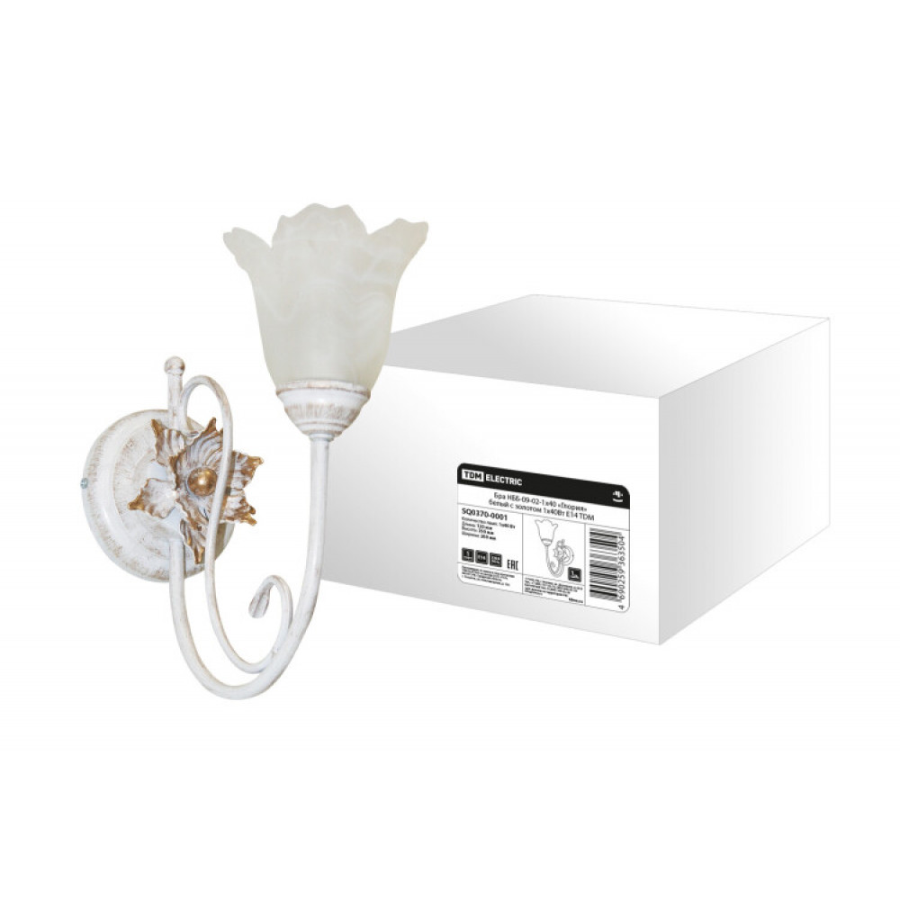 Описание Бра НББ-09-02-1х40 «Глория» белый с золотом 1х40Вт E14 SQ0370-0001