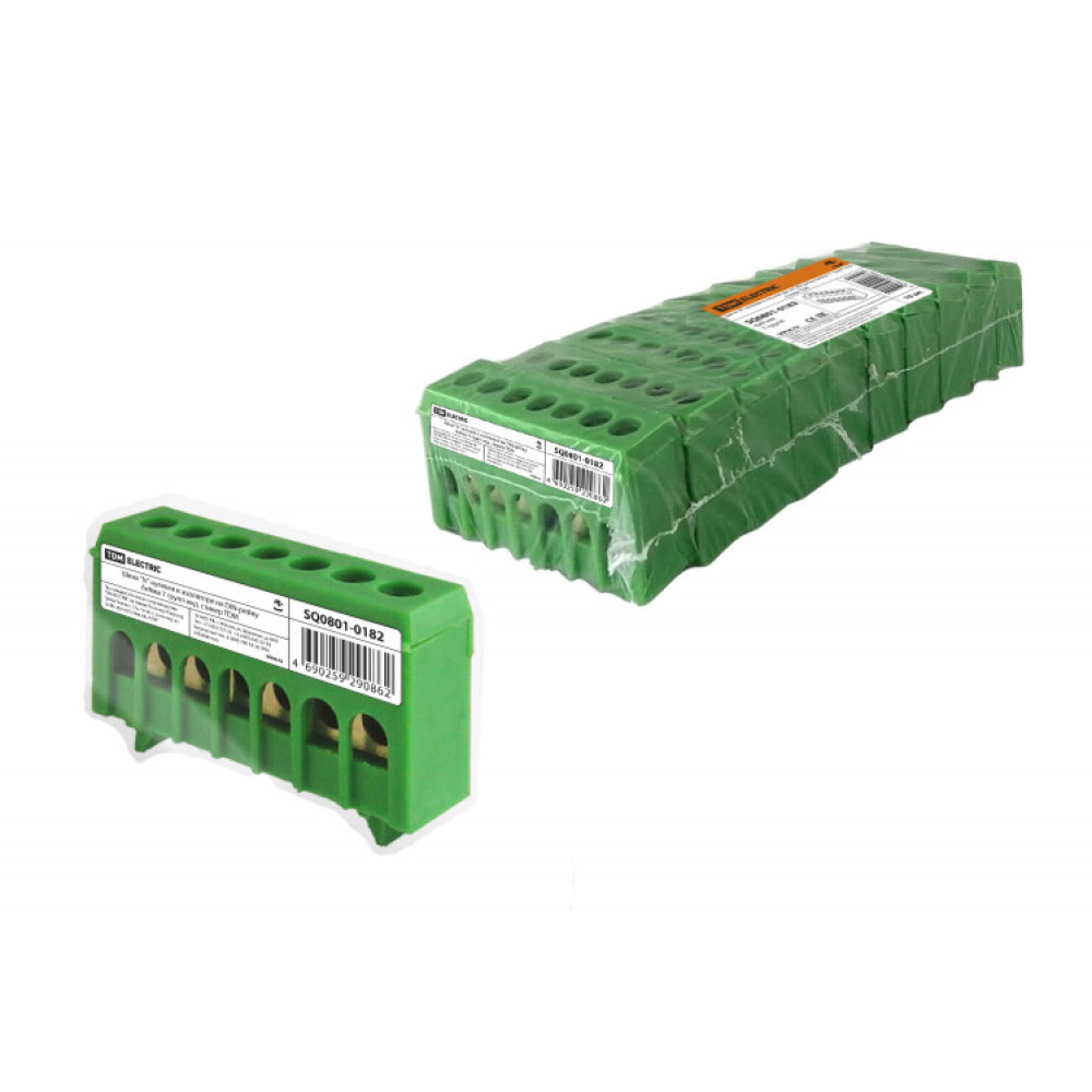 Шина "N" нулевая в изоляторе на DIN-рейку 6x9мм 7 групп инд. стикер SQ0801-0182, Блок клеммный и нулевая шина
