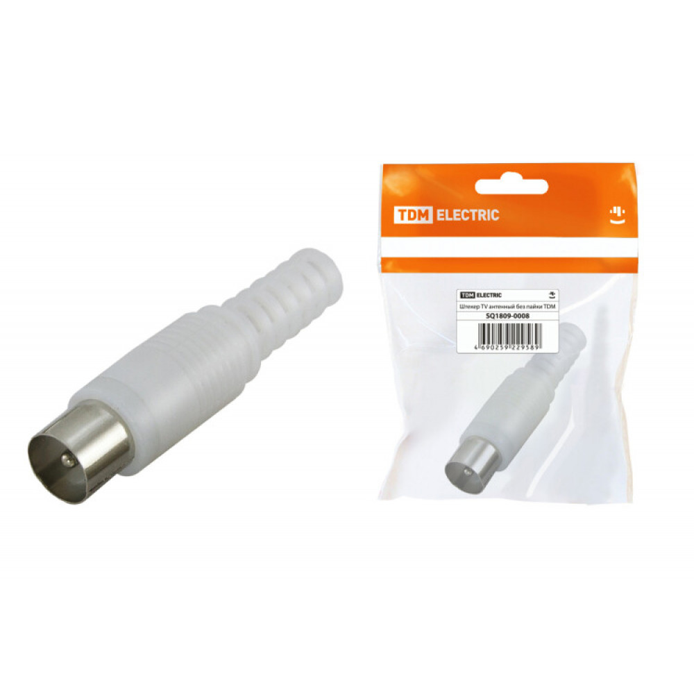 Описание Штекер TV антенный пласт. без пайки белый, инд. упаковка SQ1809-0008