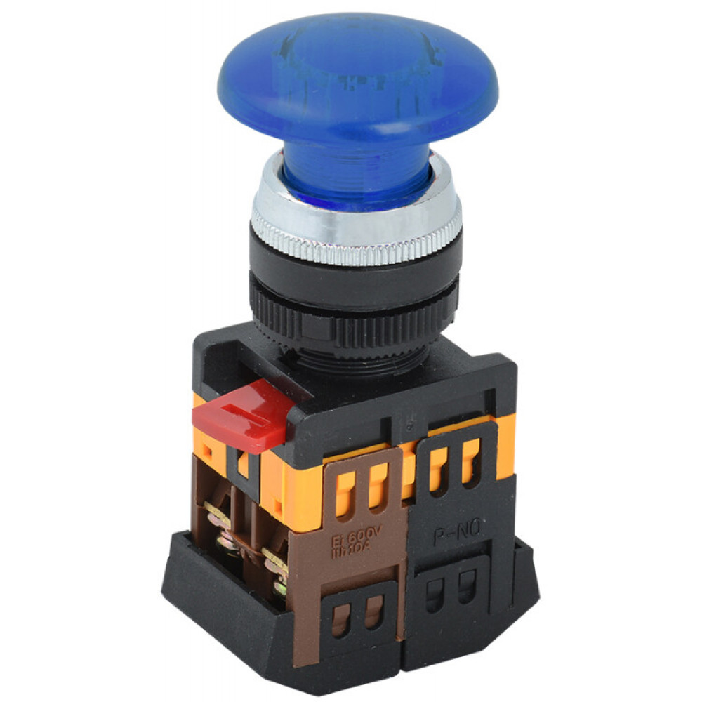 Описание Кнопка AELA-22 "Грибок" синий d22мм неон/240В 1з+1р BBG20-AELA-K07