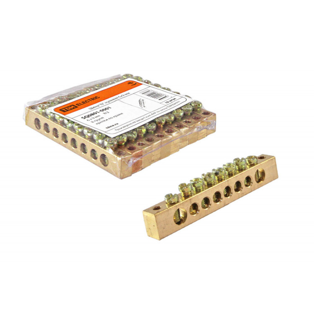 Шина "N" нулевая 6х9мм 8/2 (8групп/крепеж по краям) SQ0801-0001, Блок клеммный и нулевая шина