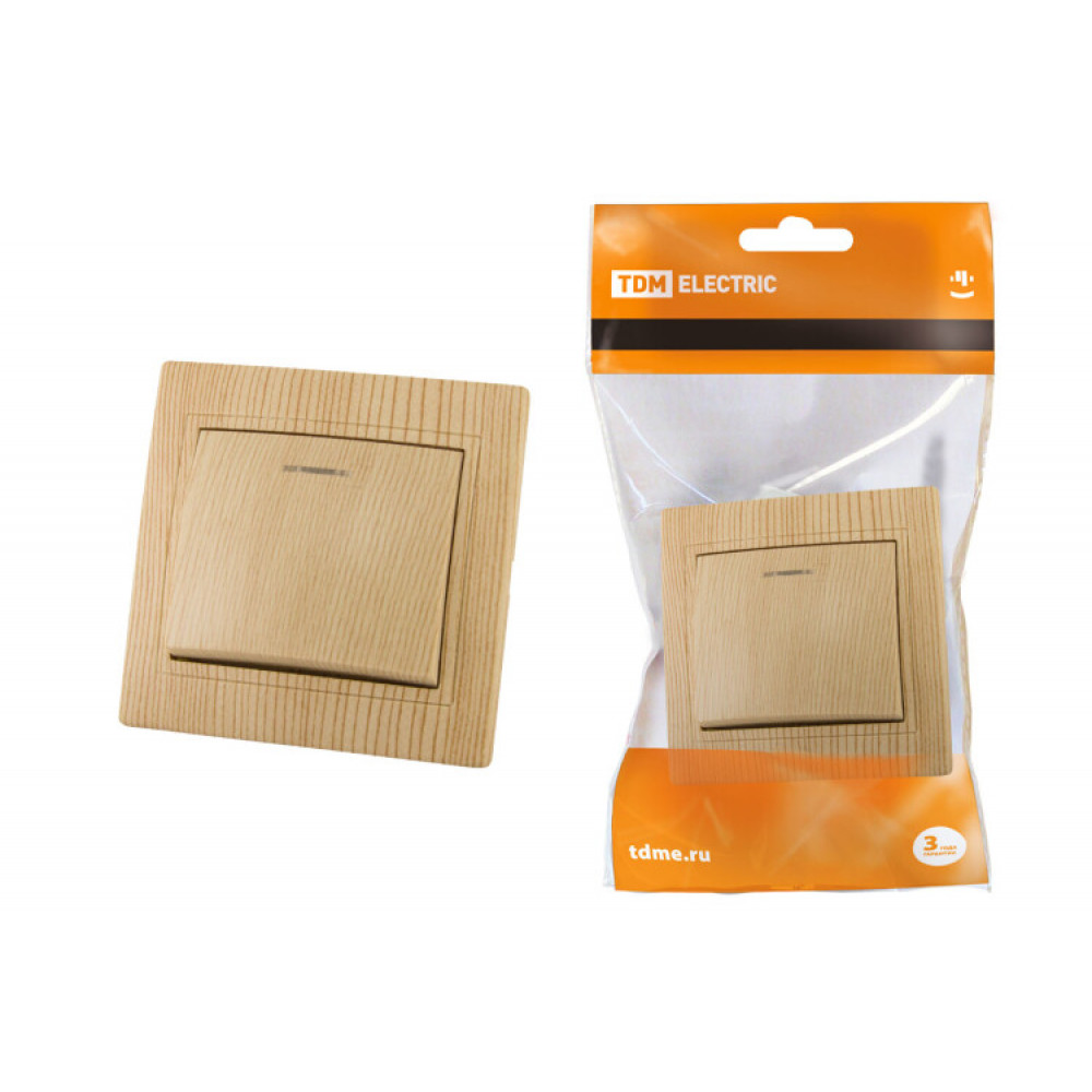 Описание Выключатель 1 кл. с подсветкой 10А "ЭКО" (сосна) "Таймыр" SQ1814-0204
