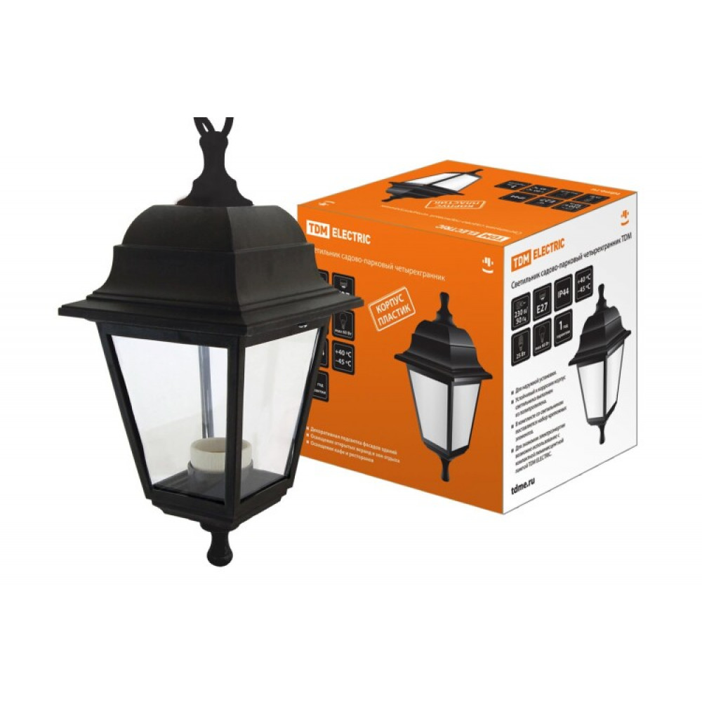 Описание Светильник садово-парковый НСУ 04-60-001 четырехгранник, подвес, пластик, черный SQ0330-0706