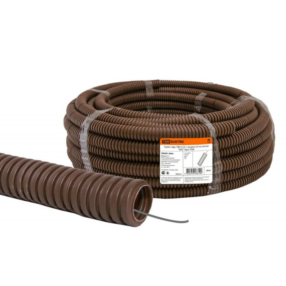 Труба гофрированная ПВХ d 25 с зондом (25 м) легкая "ЭКО" (бук) SQ0401-0043, Труба и короб для прокладки кабеля