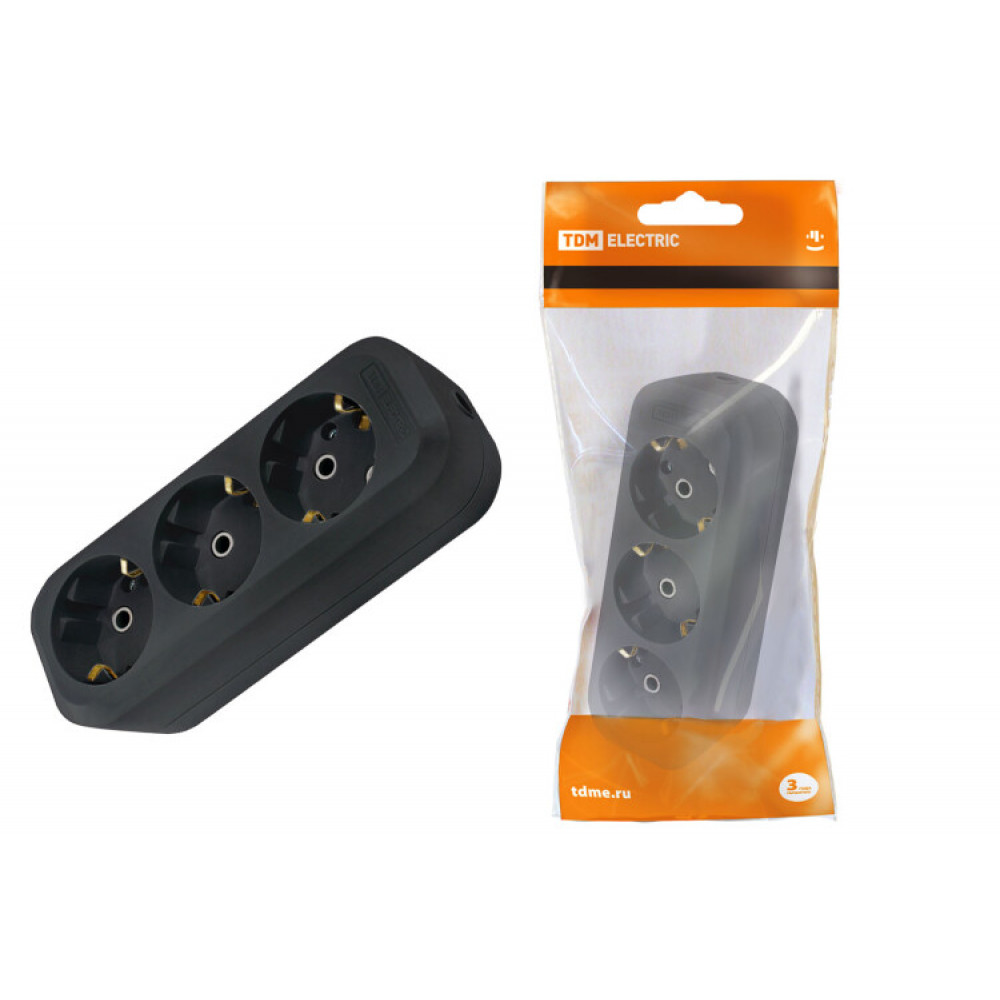 Колодка розеточная 3 гнезда 2П+3 16А 250В черная SQ1806-0113, Удлинитель, сетевой фильтр