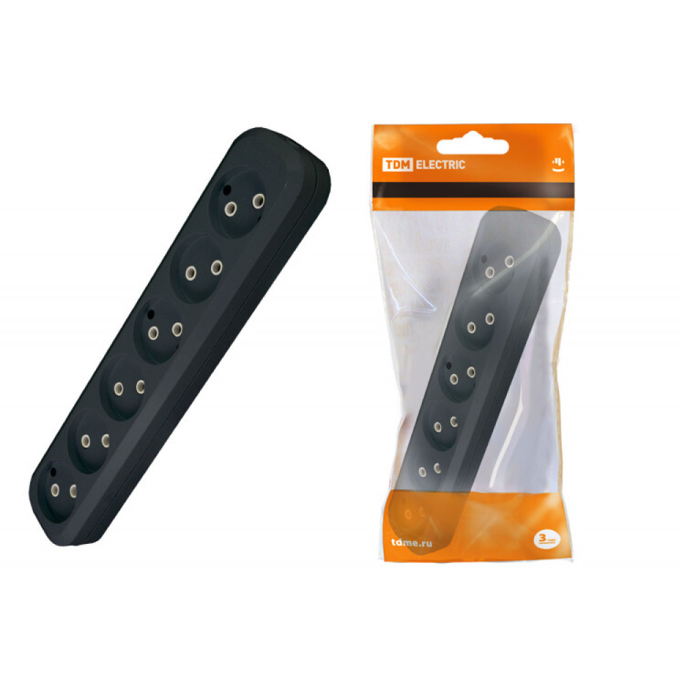 Колодка розеточная 6 гнезд 2П б/з 10А 250В черная SQ1806-0138, Удлинитель, сетевой фильтр