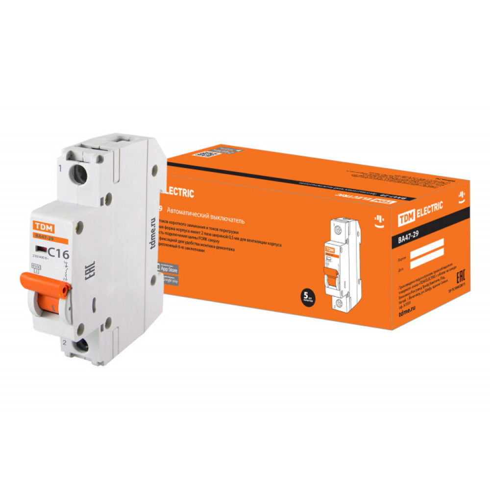 Автоматический выключатель ВА47-29 1Р 16А 4,5кА х-ка С SQ0206-0074, Выключатель автоматический модульный