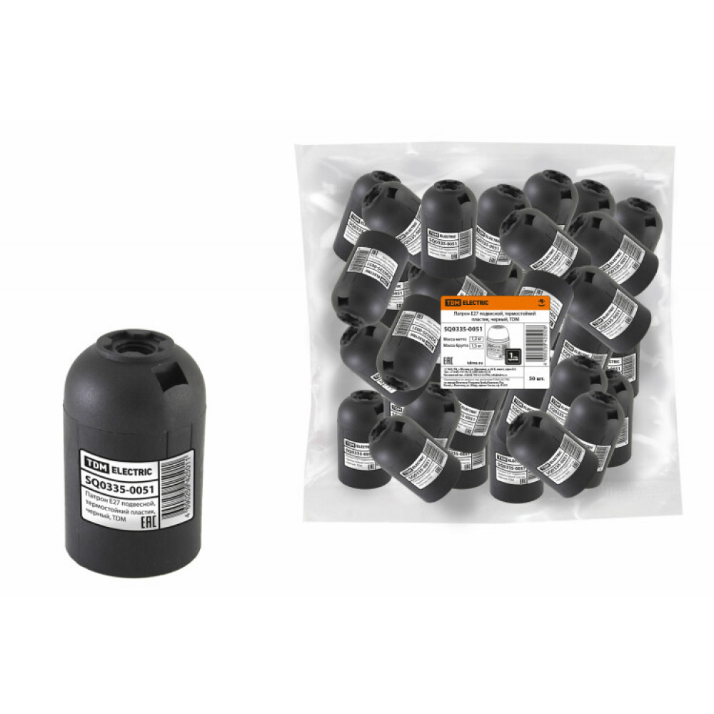 Описание Патрон Е27 подвесной, термостойкий пластик, черный, SQ0335-0051