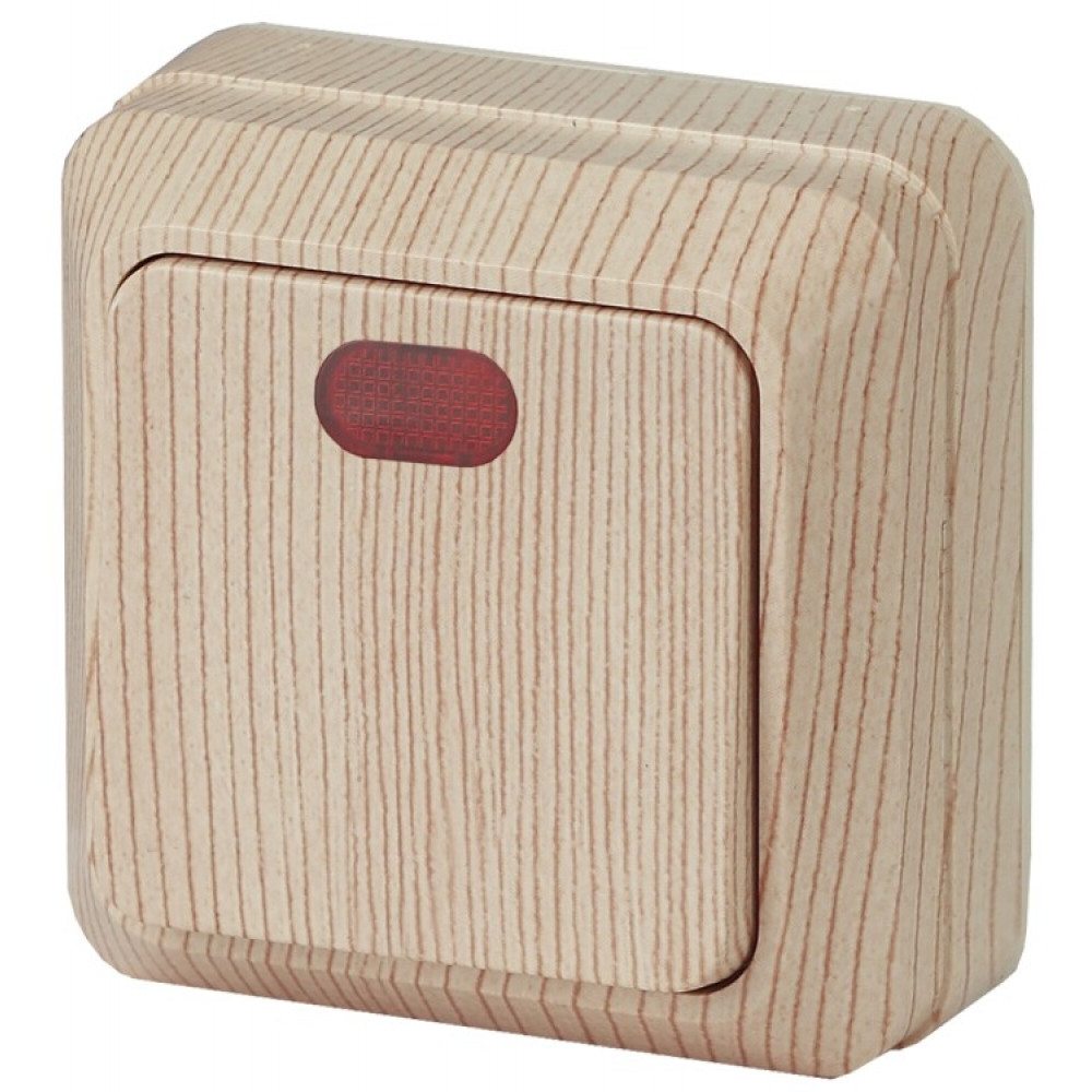 2-102-11 Выключатель с подсветкой, 10А-250В, IP20, ОУ, Quadro, сосна (10/200/3600) Б0027636, Выключатель и переключатель открытого монтажа