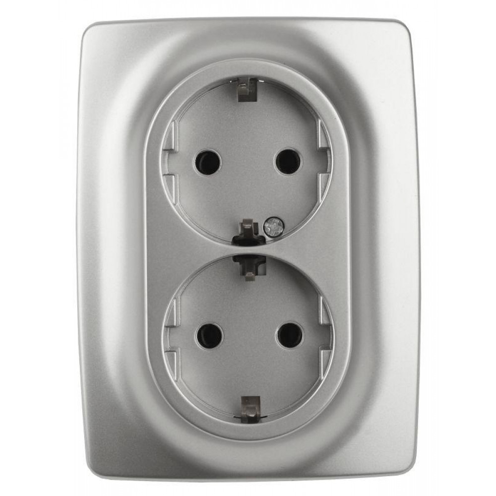 Доставка 12-2106-03 Розетка 2X2P+E Schuko, 16A-250В, IP20, 2, алюминий (10/100/1600) Б0031230