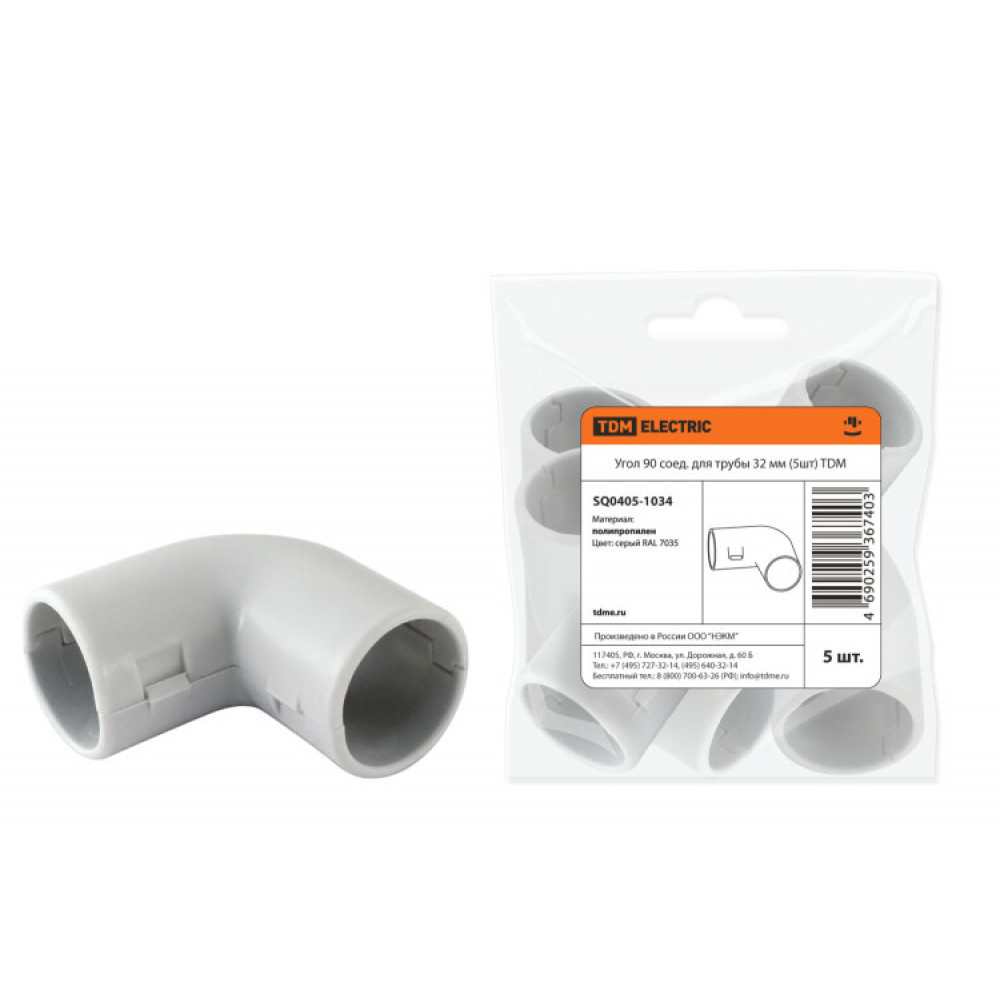 Описание Угол 90 соед. для трубы 32 мм (5шт) SQ0405-1034