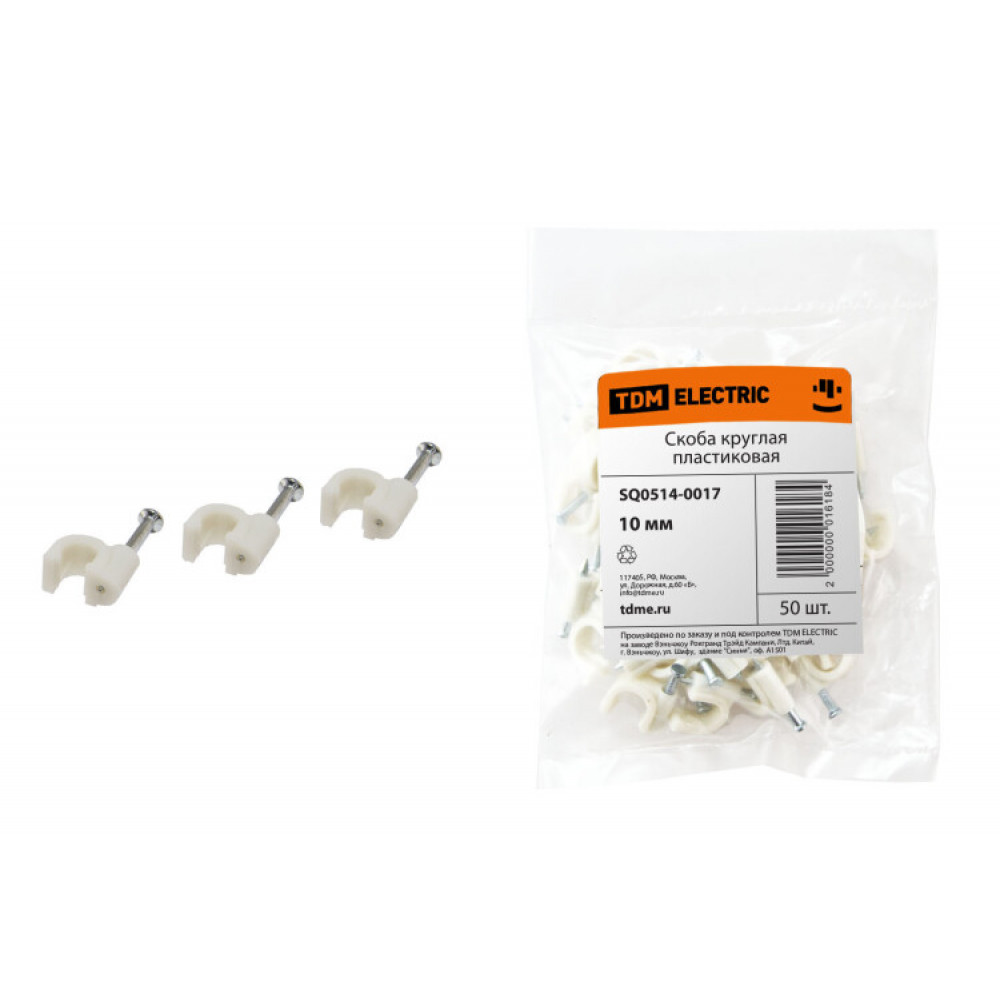 Описание Скоба 10мм круглая пластиковая (белая) (50шт) SQ0514-0017
