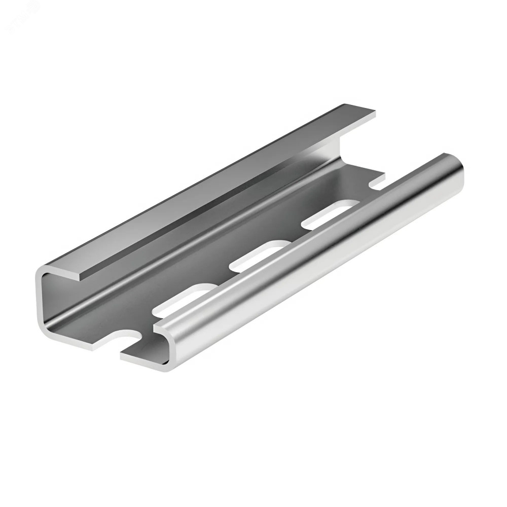 Изготовлена из оцинкованной стали с пассивацией, что обеспечивает высокую прочность и стойкость к коррозии. Она имеет форму рейки G-типа с перфорацией. Также, она имеет непрерывную линию по центру основания, что облегчает установку и снятие компонентов.