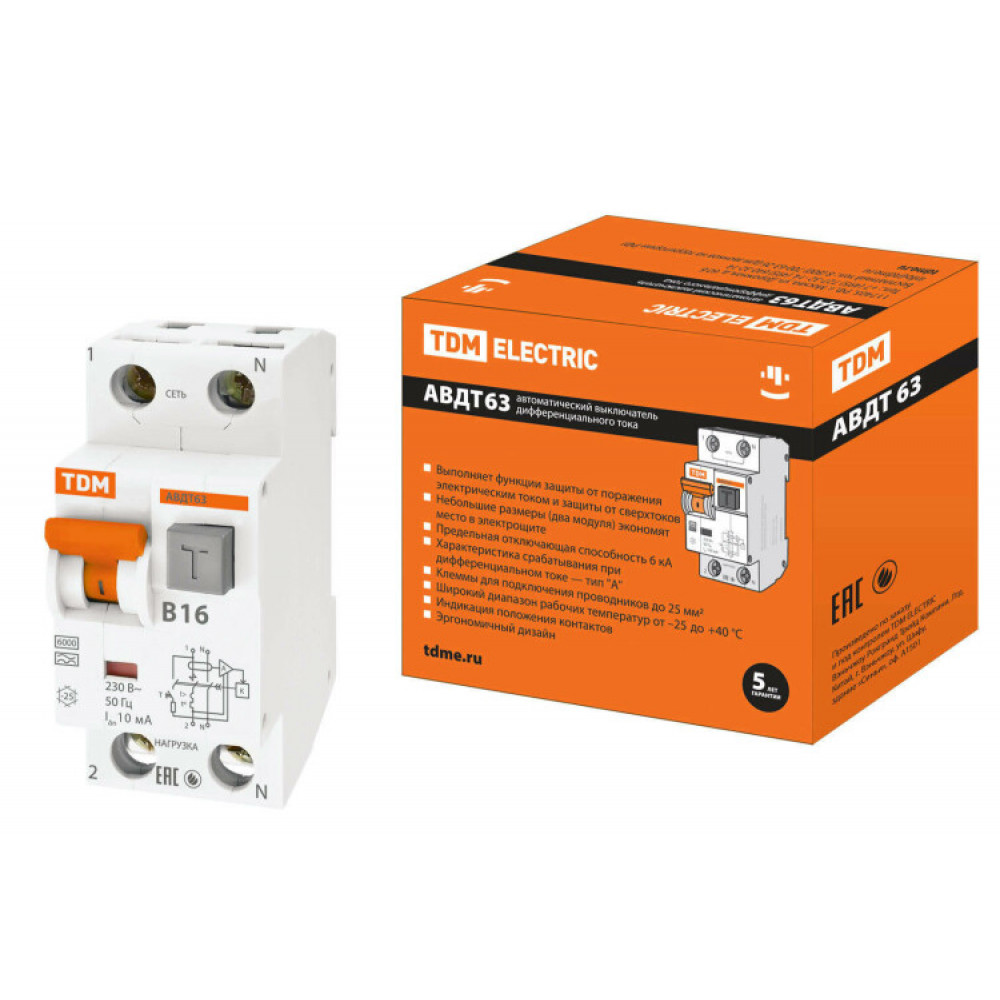 Описание АВДТ 63 2Р(1Р+N) B16 10мА 6кА тип А SQ0202-0009