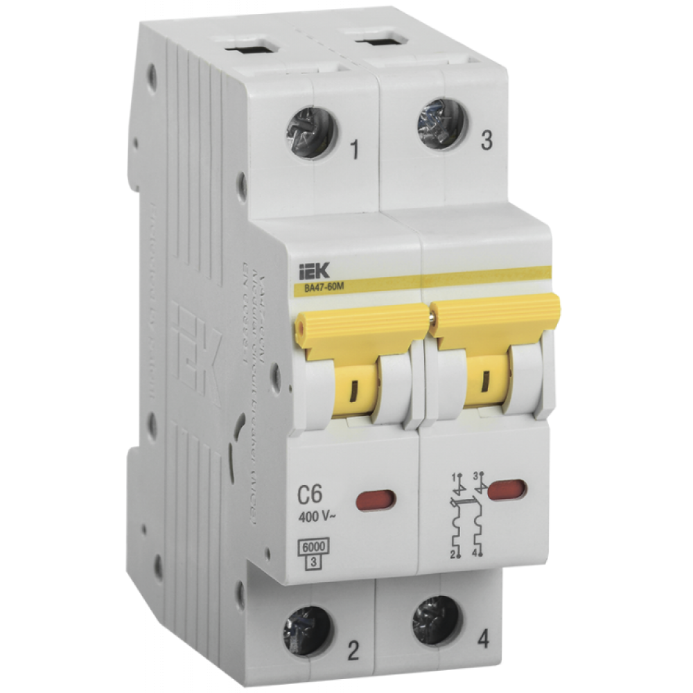 Автоматический выключатель ВА 47-60 2Р 6А 6 кА х-ка С ИЭК MVA41-2-006-C, Выключатель автоматический модульный